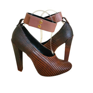 Celine Brown Lizard Platform Ankle Strap Heels Pumps 36.5 (US 6.5) Phoebe Philo