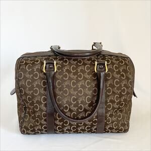 Elegant Celine shoulder bag with monogram pattern. Features dual handles and gold-tone hardware. Perfect for everyday use.