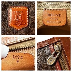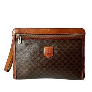 Celine Brown & Tan Macadam Leather Wristlet Clutch Bag