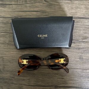 Stylish Celine sunglasses in a classic tortoise pattern. Features elegant gold accents. Perfect for a sophisticated look. Open to negations on price, never worn.