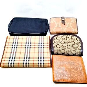 Celine Burberry Pouch Wallet 5 set Brown Leather bundle deal.$145/ea or $599 set