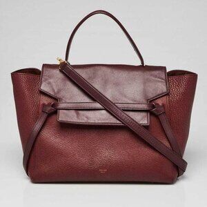 The exterior leather is clean throughout but has light creasing, faint scuffs, and gentle wear to the bottom corners. The handle and strap are both in good condition with light wear to the glazed edges and some creasing. There are surface scratches on the hardware but it is bright and crisp otherwise. The interior lining has rubbing, soiling, and a light perfume scent.