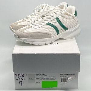 White leather and mesh, green leather, grey suede (Calf)