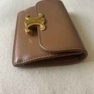Authentic Celine Card Holder with Flap Triomphe in Bronze Shiny Calfskin. Never used – in perfect condition!