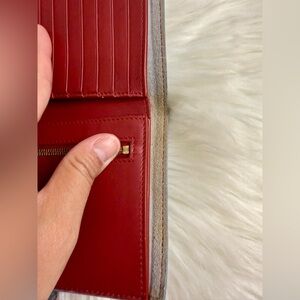Celine Color Block Wallet in good condition. The inside has some flaws, on the leather by card slots it has some nicks from the zipper ( common), coin compartment clean, the bills compartment needs to be cleaned ( suede). See pictures. Otherwise this wallet is in good shape.