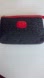 Celine Cosmetic Toiletry Pouch Black Embossed Monogram Red Leather Trim 8x9x2