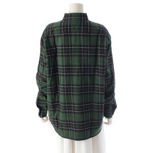 Celine Cotton Flannel Check Oversized Long Sleeved Shirt Top 2c582178r Green 36