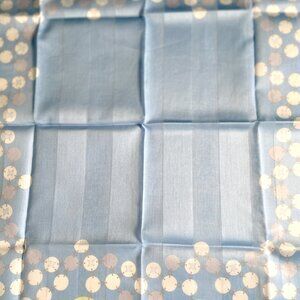Add a touch of timeless elegance with this new-with-tags Celine cotton scarf. Featuring a pastel geometric circle motif in soft yellow, green, blue, and pink on a pale blue background, it’s a versatile accessory that works year-round.
