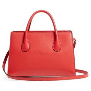 Effortless chic with a touch of sophistication, brushed-goldtone hardware shines against the rich leather, while the roomy interior offers enough space for essentials.