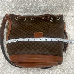 Celine Drawstring Macadam Triomphe Bucket Bag Leather. Pre-owned. Minor signs of wear, scuffs. See pictures