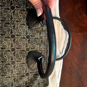 This stylish Celine Vintage handbag features a sophisticated black and gray signature design, perfect for any occasion. Its elegant pattern adds a touch of class to your ensemble.