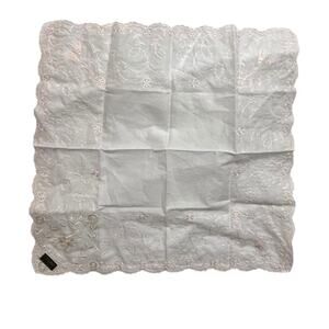 Celine Embroidered Pink Handkerchief Cotton Lace Scalloped Edge 16in