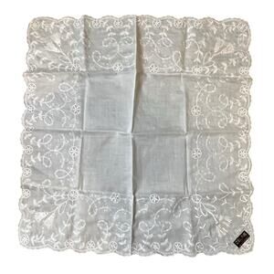 Vintage CELINE Embroidered Handkerchief Light Pink Cotton Lace Scalloped Edge Hanky Scarf NWT