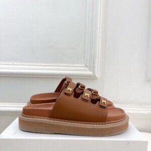 Excellent condition. No creases on the footbed, and stitching is clean. Buckles shine under light. Comes from a smoke-free space.