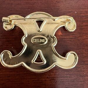 Stunning Celine brooch in gold. Features sparkling crystals.
