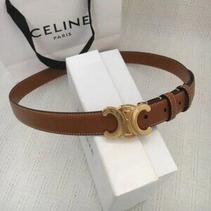 Celine Gold Brown Leather Belt Classic Design Size 85