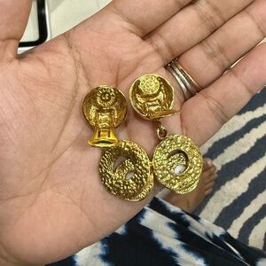 Chic Celine earrings with a radiant gold finish. Features elegant pearl accents. Ideal for a stylish touch.