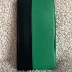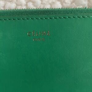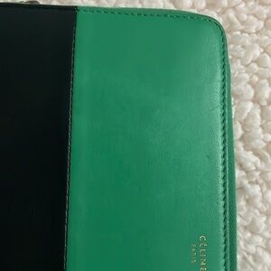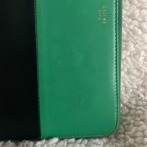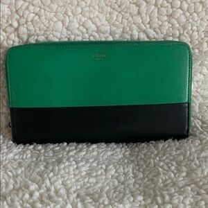 Stylish Celine wallet. Bold green and black design. Sleek and modern look.