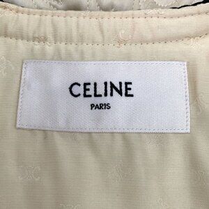 This Celine khaki jacket, crafted in luxurious silk satin, features an elegant quilted relief design with contrasting black trim. A timeless piece for refined wardrobes.