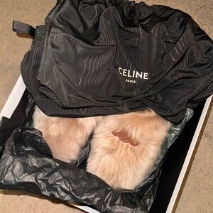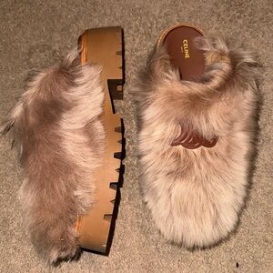 Celine Lamb Fur Mules worn once 100% authentic. Comes with box and dust bags.