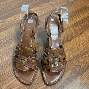 Celine Leather Sandals Woven Detail Brown Sz 38.5 B / US 8.5 B