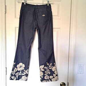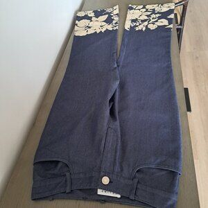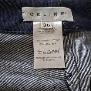 Made in France. Gorgeous Celine jeans twill pants with alabaster flower print bottoms. Silky smooth light fabric blend (71% cotton/ 29% silk), with back pocket metal Celine logo plate, 4 front and back pockets, metal zipper. Size FR 36. Size reference: corresponds to XS/S . Excellent condition, pre-owned piece, Y2K, kept in storage.