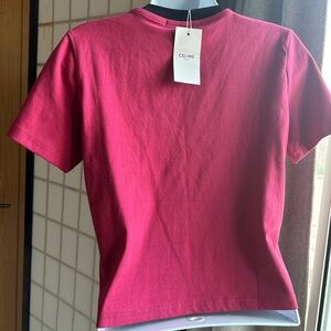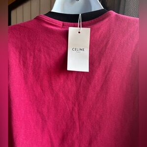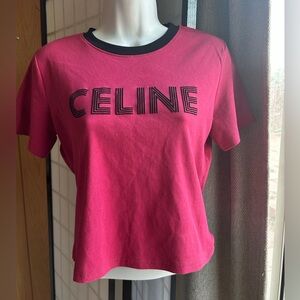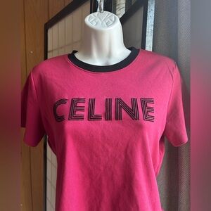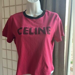 Celine Logo Ringer T-Shirt Elevate your casual wardrobe with this stylish pink T-shirt from Celine. Perfect for everyday wear, it combines comfort with a chic design. Believe to be a small or medium tag was removed