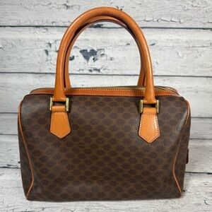 Celine Macadam Boston Brown Monogram Canvas Leather Handbag
