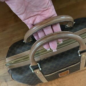 Gorgeous Celine coated canvas and leather bag. Good used condition. Shows normal wear. No stains on canvas, leather or interior. No cracking on leather. Some patina from normal wear. Rolled leather handles. She has 4 feet on bottom. Some wear on corners. (See pics). Zipper works excellent. Clean interior. 1 exterior pocket. Coated canvas interior zip pocket. Tiny mark on inside of interior zip pocket. Beautiful LUXURY bag. A steal at this price.