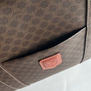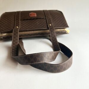 Celine Macadam Brown Tan Genuine Leather Hand Bag Shoulder Bag Business Bag