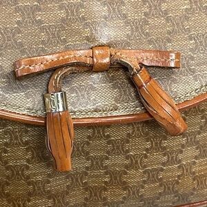 Celine Macadam Coated Canvas Brown Tan Crossbody Bag Flap Close Bow