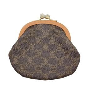 Celine Macadam Pattern PVC Leather Brown Clasp Purse Coin Case