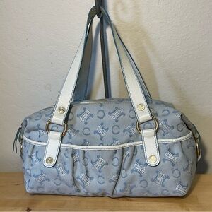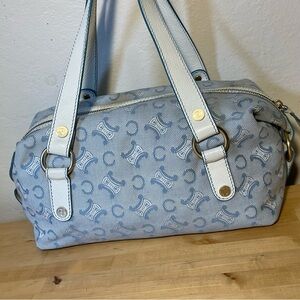 Celine Macadam Pattern Shoulder Bag Vintage Blue CY 00/44