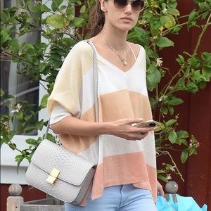 This listing is for a Celine Medium Box Bag in Python leather. It’s a soft grey color with warm undertones, which looks stunning against the gold hardware. The bag has been worn only a handful of times and is in excellent used condition. There is a small spot to the left side of the seam on the rear of the bag, as shown in photos.