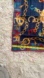 Elegant scarf with chain design. Features vibrant multicolor letters and gold accents.