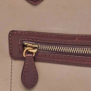 The exterior leather has creasing throughout, along with heavy rubbing and wear to the bottom corners. The handles have scuffing and the glazing has cracking. Please note that the rear handle has softened at the base and tends to flop over. The goldtone hardware has surface scratches and fading especially to the bottom metal feet. The interior shows rubbing and creasing throughout.