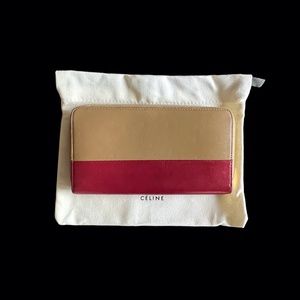 Celine | Multifunction Zip Wallet Tan and Burgundy