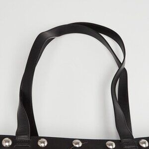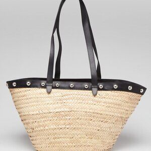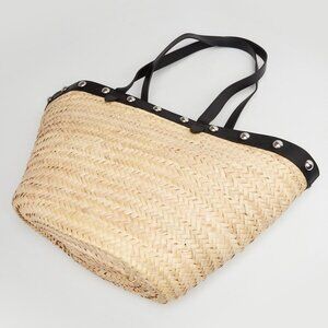 Celine Natural Woven Straw and Black Leather Studded Tote Bag