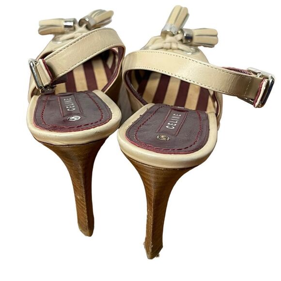 Celine Nude Platform Pumps Heels Sling Back Tassels Square Toe Size 36