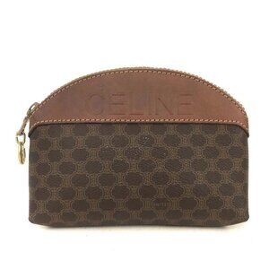 Celine PVC Leather Cosmetic Pouch Black Canvas Vanity Bag