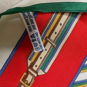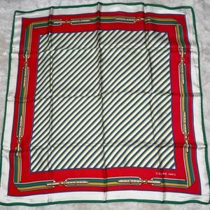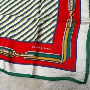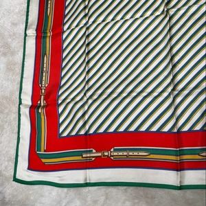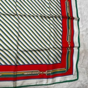 Celine Paris 100% Silk Red & Green Stripe Buckle Print Square Scarf