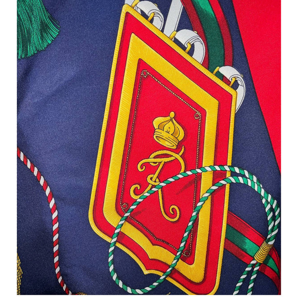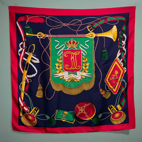 Celine Paris 100% Silk Scarf French Revolution Motif. Navy Red Green EUC