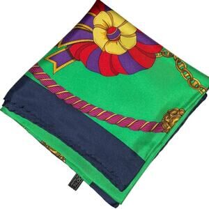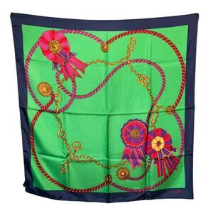 Celine Paris 100% Silk Scarf Loop & Rosette Pattern Green