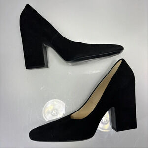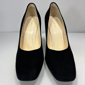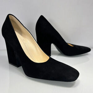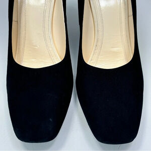Celine Paris Black Suede Square Toe Chunky Heel Pumps Size 40
