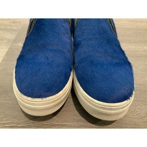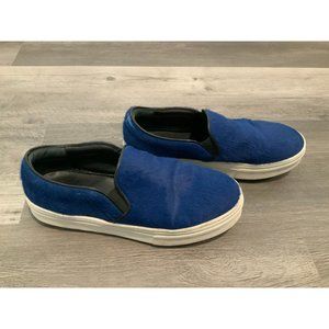 Celine Paris Blue Pony Hair Slip-On Sneakers Flats, Size 37.5 (EU), 7.5 (US)