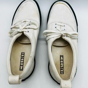 Celine Paris Classic White Canvas Sneakers with Hunter Green soles size 8