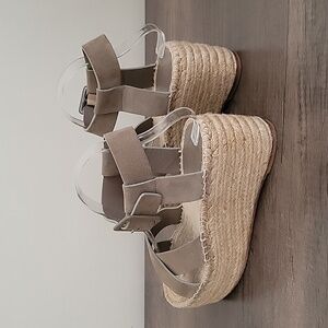 Celine Paris Criss Cross Suede Platform Espadrille Sandals beige size 39