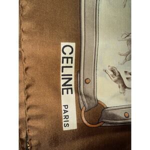 Celine Paris Equestrian Print Silk Scarf in Brown