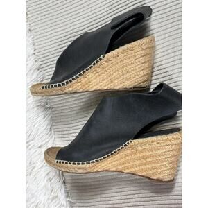 Celine Paris Leather Espadrille Wedge Heel Size 41 US 11 Black Peep Toe
