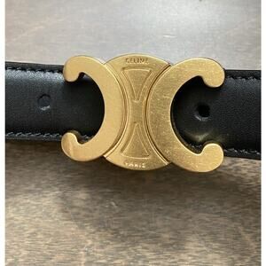 Celine Paris Medium Triomphe Belt Women Size 85 Black Leather Made In Italy